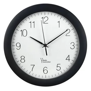 Zegar radiowy z analogowym wyświetlaczem czasu Zegar sterowany radiowym sygnałem czasowym DCF z automatyczną synchronizacją czasu z najbardziej precyzyjnym zegarem na świecie Duża, biała tarcza z cyframi arabskimi Wskazówki godzi