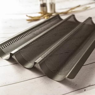 Ale jedno jest pewne: jeśli zadacie sobie trud, aby przygotować bagietkę z zakwasem, zostaniecie nagrodzeni szczególnie lekkim i chrupiącym pieczywem. Bagietka podczas pieczenia pozostaje w dobrej kondycji. Taca na bagietki oferuje miejsce na 3 bagietki. Dzięki perforowanej powierzchni formy ciepło może być równomiernie rozprowadzane.