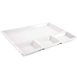 Talerz dzielony na 4 sekcje. Idealny na posiłki przy grillu, podamy na nim mięso, chrzan, musztardę, żurawinę, ... Materiał: porcelana. Wymiary: 26,5x20 cm. ...