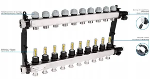 Afriso Rozdzielacz ProCalida VA 1C ze stali nierdzewnej, 10 obiegów, nakrętki G1'', 0,5 - 4,0 l/minA