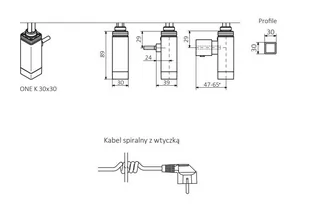Terma One Grzałka 30x30 600W kabel spiralny z wtyczką chrom WEOKX06TCROU - odbiór osobisty: Kraków, Warszawa