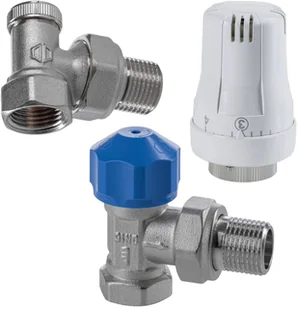 Zestaw grzejnikowy - wersja kątowa DN15 (głowica termost.+zawór termost.+zawór powrotny)