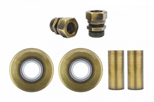 Zestaw maskujący rozety+tuleje+złączki GZ1/2 x Cu Skład zestawu: 2 rozety pojedyncze, okrągłe, metalowe 2 tuleje metalowe 2 złączki do instalacji miedzianej dopasowane m. in. do zaworów: Royal/Swing/Master/Elegant Właściwości zestawu: średnica otworów rozet Ø 22 mm złączka skręcalna GZ x Cu (15x1) - przystosowana do podłączenia zaworów zakończonych GW do instalacji Cu (15x1).