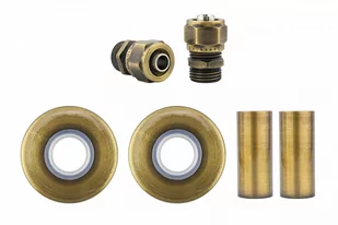 Zestaw maskujący rozety+tuleje+złączki GZ1/2 x Pex Skład zestawu: 2 rozety pojedyncze, okrągłe, metalowe 2 tuleje metalowe 2 złączki dopasowane m. in. do zaworów: Royal/Swing/Master/Elegant Właściwości zestawu: średnica otworów rozet Ø 22 mm złączka skręcalna GZ " x PEX (16x2) - przystosowana do podłączenia zaworów zakończonych GW " do instalacji PEX (16x2).