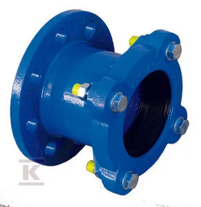 Łącznik służy do naprawy lub połączenia rurociągu w sposób szybki, bezpieczny i skuteczny. Może być stosowany przy łączeniu rurociągów stalowych, żeliwnych, azbestowo-cementowych, PVC z armaturą kołnierzową. Łącznik składa się z korpusu, pokrywy dociskowej i stożkowej uszczelki z elastomeru.
