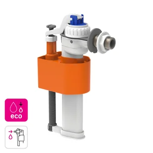 Ten kompaktowy zawór napełniający toaletowy z bocznym wlotem EQUATION jest przeznaczony do spłuczek toaletowych, w których woda jest doprowadzana z boku (wysokość produktu: 208 mm). Dzięki obudowie rozdzielacza kran zmniejsza zużycie wody. Boczny wlot mosiężny 1/2’ (15/21) dostarcza wodę do toalety. Aby wydłużyć żywotność spłuczki, dostępna jest szeroka gama części zamiennych Equation Jest objęty 10-letnią gwarancją.