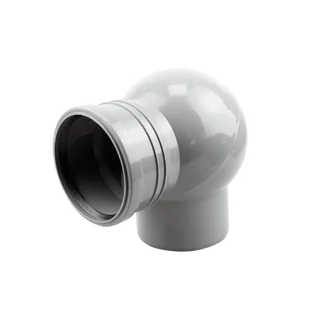 Kolano nastawne o średnicy 110 mm. Ustawienie kąta odbywa się za pomocą dwóch nastawnych części kolana które są połączone ze sobą w miejscu o kształcie kuli. Wykonane z PP w kolorze szarym. Mufa z uszczelką. Samonastawne kolano z odejściami fi 110 mm.