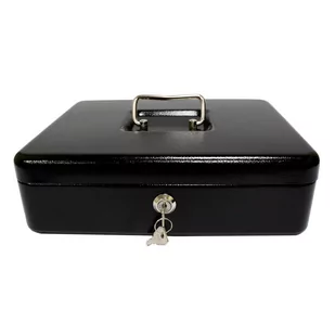 Verotech Duża kasetka na pieniądze - skrzynkę wyprodukowano ze stali wytłaczanej - jej powierzchnię pokryto epoksydową powłoką proszkową - na górze obudowy znajduje się składany, niklowany uchwyt ułatwiający przenoszenie - zamek mechaniczny z kluczykiem zapewnia bezpieczeństwo i zabezpiecza przed nieuprawnionym dostępem - w środku znajduje się plastikowa szufladka z przegródkami (można ją wyjąć) Kasetka marki Verotech przeznaczona jest do przechowywania pieniędzy lub innych kosztowności. Doskonale sprawdzi się zarówno w celach komercyjnych, jak również w domu. Skrzynkę Verotech wyposażono w wysokiej jakości zamek mechaniczny oraz kluczyk. Zapewnia to całkowite bezpieczeństwo przechowywanych wewnątrz, wartościowych przedmiotów. Produkt wyróżnia się estetycznym wyglądem, dzięki dzięki zaokrąglonym krawędziom.