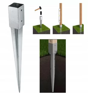 Kotwa metalowa wbijana dedykowana do lekkich konstrukcji ażurowych. Kotwa służy do mocowania kantówki drewnianej o przekroju 7 x 7 cm w gruncie. Kotwę należy wbić w ziemię, a następnie osadzić w niej kantówkę i przykręcić wkrętami. Długa podstawa zapewnia stabilne mocowanie w gruncie. Kotwę wykonano ze stali ocynkowanej, dzięki czemu produkt jest trwały i odporny na korozję.