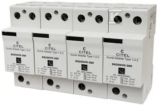 Ogranicznik przepięć Typ 1+2+3(BCD) 100KA 4P DS254VG-300 o numerze katalogowym C3713 w kategorii Ograniczniki przepięć typ 1+2, Ograniczniki przepięć. Produkt wyprodukowany przez markę CITEL, seria DS.. OGRANICZNIK PRZEPIĘĆ o wymiarach 0.12 x 0.08 x 0.16 m. Waga produktu wynosi 1.15 kg.