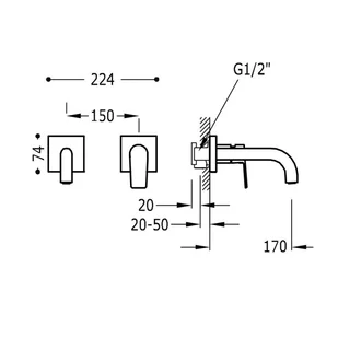 Bateria umywalkowa TRES Slim Exclusive podtynkowa Stal 20230012AC