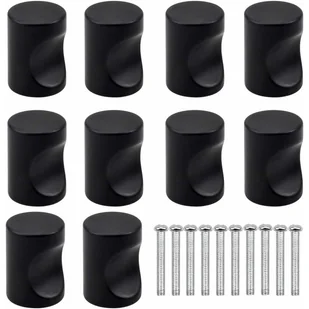 Ilość: 10 sztuk czarnych gałek do drzwiczek szafek. Każda gałka jest dostarczana ze śrubą montażową.