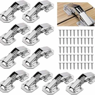 Zawartość opakowania: 10 x 4,4 x 10,5 cm zawiasów do drzwi rzecznych, odpowiednich do płyt o grubości 10-16 mm. Zawiera 80 śrub (nie wymaga dodatkowych śrub). Łatwy w samodzielnym montażu. Proste i praktyczne, są niezbędnym dodatkiem do montażu mebli. Wysokiej jakości materiał: Zawias do drzwi kuchennych wykonany jest z wysokotwardej, podwójnie powlekanej, walcowanej na zimno blachy stalowej. Powierzchnia jest niklowana, odporna na korozję, rdzę i trwała, o długiej żywotności. Jest gładka i nie ma zadziorów na krawędziach. Łatwa instalacja: Dzięki ośmiu wstępnie nawierconym otworom nie jest wymagane wiercenie. Łatwe jest wyrównanie i regulacja drzwi; do zakończenia instalacji potrzebny jest tylko śrubokręt. Można je montować na różne sposoby, aby idealnie dopasować. Unikalny design: Zawiasy meblowe mają hydrauliczną konstrukcję teleskopową. Powoli pociągnij drzwi, aby je zamknąć, a będą się poruszać płynnie i cicho. Podczas procesu zamykania drzwi zamykają się powoli, aby zmniejszyć turbulencje i zapobiec nadmiernemu hałasowi. Nie słychać głośnego zgrzytu przy zamykaniu drzwi.