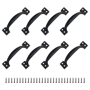 Styl vintage: Rustykalna, żelazna klamka z postarzanym, retro wykończeniem, które nadaje jej antyczny wygląd. Materiał klamki do drzwi i okien: Wysokiej jakości stop cynku, bardzo wytrzymały do użytku wewnątrz i na zewnątrz. Prosty design i matowa, czarna, malowana proszkowo powierzchnia nadają jej elegancji i piękna. Cechy: Rustykalny styl, wszechstronność, trwałość i łatwość montażu. Klamka jest całkowicie bezpieczna, odporna na trudne warunki atmosferyczne, zarówno wewnątrz, jak i na zewnątrz. Wielofunkcyjność: Ta wysokiej jakości czarna klamka do drzwi stodołowych może być stosowana do drzwi, bram, garaży, stodół, szop, drzwi rzecznych, drzwi przesuwnych itp. Podczas zakupu, aby wybrać idealny rozmiar, prosimy o zapoznanie się z rozmiarem produktu po lewej stronie. Zawartość: 8 klamek ze śrubami montażowymi.