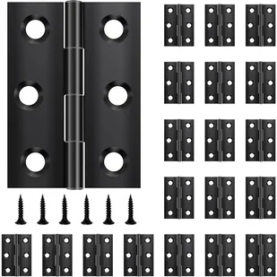 Specyfikacja zawiasów: Opakowanie zawiera 20 czarnych zawiasów i 120 śrub. Rozmiar zawiasu: 44 x 31 mm. Rozmiar otworu montażowego: 4,2 mm. Rozmiar śruby: 16 x 6 mm. Materiał zawiasu: Zawias wykonany jest ze stali nierdzewnej 201 z czarną powłoką na powierzchni. Jest bardzo wytrzymały, odporny na rdzę i korozję. Budowa zawiasu: Zawias ze stali nierdzewnej ma konstrukcję z 6 otworami. Środkowy sworzeń jest mocno zamocowany, szczelina jest niewielka, a zawias jest odporny na wstrząsy. Nity są zamocowane na obu końcach środkowego sworznia, aby zapewnić jego stabilność.