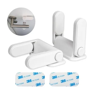 [DOSTAWA] 2 x blokada zabezpieczająca dla dzieci do klamek drzwi, w kolorze białym, 2 x zapasowe podkładki samoprzylepne.