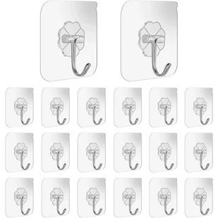Niewidoczna przezroczysta konstrukcja: Przezroczysta podstawa sprawia, że jest prawie niewidoczny i nadaje się do większości dekoracji wnętrz. Można go nawet zawiesić na suficie. Samoprzylepne haki ścienne przylegają do większości płaskich i stabilnych powierzchni i są szczególnie odpowiednie do wieszania akcesoriów prysznicowych lub łazienkowych w łazience lub do wieszania przyborów kuchennych i narzędzi na kafelkowym panelu.