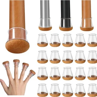 Opakowanie 20 szt. ochraniaczy na nogi krzeseł, wykonane z silikonu i grubego filcu, przezroczyste, odporne na zarysowania, średnica 30-40 mm