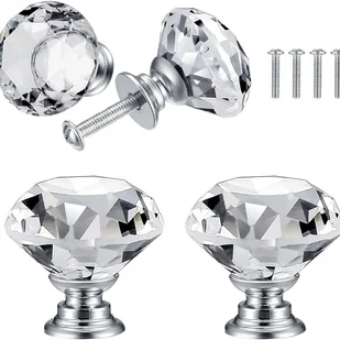 【Kryształowy design】 Nasze klamki lśnią w świetle i odbijają różne jasne kolory, ożywiając pomieszczenie i nadając uchwytom kuchennym elegancji i piękna. Prosty kryształowy kształt diamentu idealnie pasuje do każdego mebla, lepiej zastąpić stare gałki meblowe.