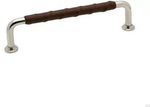 Uchwyt meblowy podłużny 1353 128 Srebrny Nikiel Polerowany Brązowa skóra naturalna
