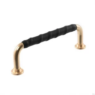 Uchwyt meblowy podłużny LL 1353 96 Mosiężny Polerowany z Czarną Skórą