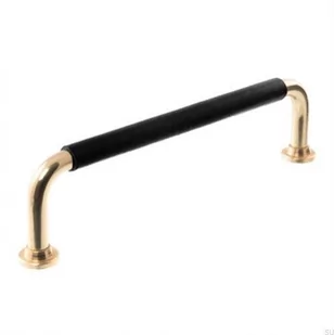 Uchwyt meblowy podłużny LS 1353 96 Mosiężny Polerowany z Czarną Skórą