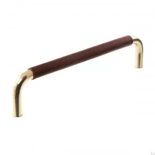 Uchwyt meblowy podłużny LS 7353 96 Złoty polerowany z ciemnobrązową skórą