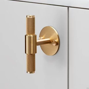 Uchwyt meblowy w kształcie litery T. Solidny moletowany uchwyt. T-BAR wykonany jest z litego mosiądzu z charakterystycznym, diamentowym wzorem krzyżowym. Doskonale sprawdza się przy szufladach w pokoju dziennym, ale także w przypadku szafek kuchennych. Uchwyt jest woskowany, co zabezpiecza go przed procesem patynowania, ale go nie wyklucza.