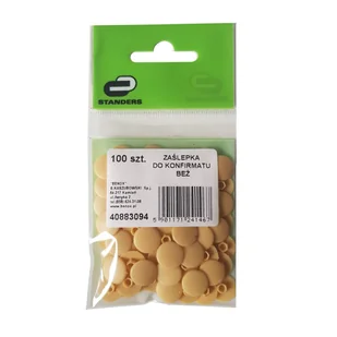 Zaślepka konfirmatu beż 100 szt. Standers przeznaczona jest maskowania konfirmatów, aby zasłonić nieestetyczne otwory, które powstały w procesie produkcji mebli. Zaślepki są bardzo łatwe w montażu, wystarczy je delikatnie docisnąć palcem. W ofercie Leroy Merlin dostępne są zaślepki w różnych kolorach, dzięki temu można dopasować je do koloru płyt meblowych.