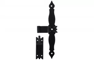 Ozdobny zawias krzyżowy, okiennicowy z hakiem w rustykalnym stylu. Malowany proszkowo na czarno. Wymiary do pobrania w pliku pdf. Polecamy!