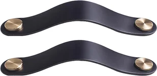 Zestaw 2 mosiężnych i skórzanych uchwytów do drzwi szafkowych w kolorze czarnym, długość 130 mm, ze śrubami, odpowiedni do szaf i kuchni