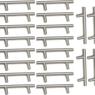 Zestaw 20 uchwytów do szafek kuchennych ze stali nierdzewnej, uchwyty do mebli kuchennych, rozstaw od środka do środka 64 mm, szczotkowane