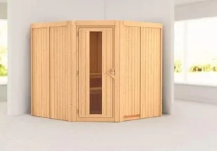Sauna fińska wewnętrzna, grubość ścianki 68 mm, wymiary sz 196 x gł 196 x w 198 cm, wersja bez listwy sufitowej + drzwi półszklane.