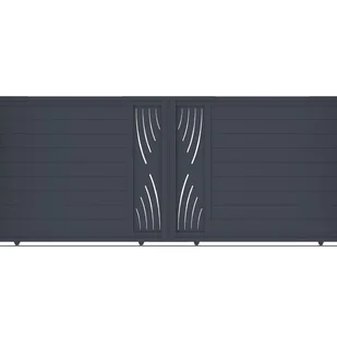 Opis: Brama przesuwna prosta półażurowa z dekoracją