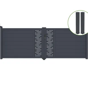 Ten pakiet zawiera:Brama aluminiowa skrzydłowa ARLBERG w kolorze szarymSzerokość: 355 cm i wysokość: 120 cm2 aluminiowe słupki H.166cm szareCasanoov specjalizuje się w bramach i furtkach KIT do samodzielnego montażu i samodzielnej