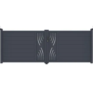 Odkryj niezrównaną elegancję naszej aluminiowej bramy skrzydłowej VELETA ozdobionej ozdobnymi płytkami z motywami w stylu „Natura”