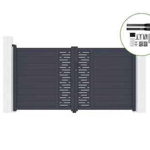 Ten zestaw bram z napędem zawiera:Brama skrzydłowa designerska ARLBERG w kolorze szarymSzerokość 300 cm, wysokość 161 cmNapęd ślimakowy (do 400kg)Casanoov specjalizuje się w bramach i furtkach KIT do samodzielnego montażu i samodz