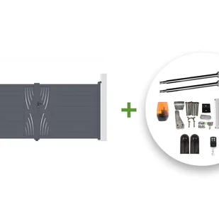 Ten zestaw bram z napędem zawiera:Brama skrzydłowa projektowa VELETA w kolorze szarymSzerokość 392 cm, wysokość 176 cmSilnik siłownika (do 600kg)Casanoov specjalizuje się w bramach i furtkach KIT do samodzielnego montażu i samodzi