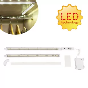 2 listwy LED, złącze kątowe, czujnik ruchu z timerem, pojemnik na baterie, taśmy samoprzylepne do montażu Zalety: