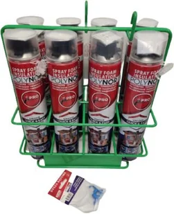 mostków termicznych trwałość żywotność to nawet 50 lat bezpieczeństwo pożarowe materiał nie ulega zapłonowi neutralność biologiczna izolacja nie powoduje grzybów, pleśni, nie przyciąga gryzoni odporność na szkodliwe działanie czynników klimatycznych mróz, ciepło, opady odporność na szkodliwe działanie czynników mechanicznych wstrząsy, obciążenia itp . odporność na działanie agresywnych czynników chemicznych - kwasy, alkalia praktyczność idealny do termoizolacji trudno dostępnych elementów i konstrukcji o skomplikowanych kształtach oszczędność nie wymaga obecności wiatroszczelnych i paroszczelnych folii, klejów, docinania, kołków, uszczelniania łączeń, dylatacji, ani innych materiałów potrzebnych do montażu tradycyjnych izolacji łatwa aplikacja zapewnia krótki czas aplikacji, bezobsługowa nie wymaga okresowych kontroli zapobiega powstawaniu kondensatu możliwość dynamicznej regulacji grubości Organizer na 8 szt. puszek GRATIS Nosidło wykonane jest z metalowych prętów malowanych proszkowo, waga 1,8 kg. Zakres dostawy 20 szt. Polynor puszka 750ml + 20 szt.