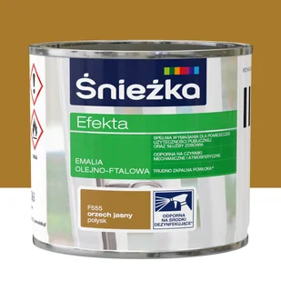 Śnieżka EFEKTA EMALIA OLEJNO-FTALOWA przeznaczona jest do dekoracyjno-ochronnego malowania drewna, materiałów drewnopochodnych, tynków oraz elementów stalowych i żeliwnych użytkowanych wewnątrz i na zewnątrz pomieszczeń, takich jak: okna, drzwi, meble, ogrodzenia, lamperie itp. Polecana do stosowania w pomieszczeniach mieszkalnych, przeznaczonych na stały pobyt chorych w budynkach służby zdrowia oraz przeznaczonych na stały pobyt dzieci i młodzieży w budynkach oświaty, a także w pomieszczeniach przeznaczonych do przechowywania produktów żywnościowych (bez bezpośredniego kontaktu z żywnością). Odporność na środki dezynfekcyjne (badania przeprowadzono na wybranych próbkach dezynfektantów), czynniki mechaniczne oraz atmosferyczne. Spełnia wymagania pomieszczeń użyteczności publicznej i służby zdrowia.