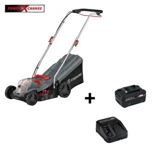 "Kosiarka akumulatorowa STERWINS to członek rodziny Power X-Change . Posiada 30-litrowy kosz na trawę ze wskaźnikiem napełnienia. Kosiarka wyposażona jest w bezszczotkowy silnik, który zapewnia większą moc oraz dłuższą żywotność, a po rejestracji na stronie* klient otrzymuje na silnik 10letnią gwarancję. Składana kierownica z regulacją wysokości w 2 pozycjach, zapewnia wygodę pracy oraz łatwe przechowywanie. W komplecie jest akumulator 4,0 Ah i szybka ładowarka, więc urządzenie od razu gotowe jest do użycia.