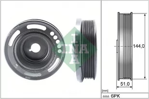 średnica zewnętrzna [mm]: 144 Szerokość [mm]: 51 Liczba rowków: 6 Drgania: z tłumikiem drgań skrętnych
