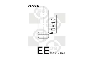 Długość [mm]: 102,8 Średnica talerzyka zaworowego [mm]: 29,7 Średnica trzonka zaworu [mm]: 7 Kąt pochylenia przylgni zaworu [stopień]: 45