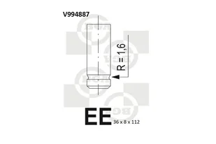 Długość [mm]: 121,9 Średnica talerzyka zaworowego [mm]: 35,8 Średnica trzonka zaworu [mm]: 8 Kąt pochylenia przylgni zaworu [stopień]: 45 Materiał grzybka zaworu: