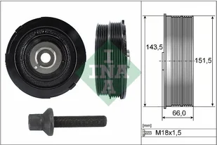 Średnica [mm]: 151,50 Średnica 2 [mm]: 143,50 Szerokość [mm]: 66,00 Liczba rowków 1: 5 Liczba rowków 2: 5 Drgania: z tłumikiem drgań skrętnych