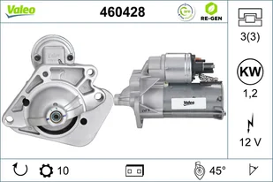 Napięcie [V]: 12 Moc znamionowa [kW]: 1,2 Liczba zębów: 10 Liczba otworów: 3 Liczba otworów gwintowanych: 3 Kierunek obrotów: zgodnie z ruchem wskazówek zegara Pozycja / stopień: R 45 Zacisk: NO Ciężar [kg]: 2,97