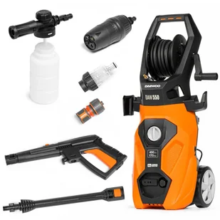 Daewoo DAW 550 to elektryczna myjka wysokociśnieniowa o mocy 2200 W, zaprojektowana do efektywnego usuwania zabrudzeń z samochodów, chodników, tarasów, ogrodzeń i innych powierzchni wokół domu. Dzięki funkcjom takim jak auto-stop, samozasysanie wody oraz wbudowana pianownica, prace porządkowe są szybkie, wygodne i skuteczne.