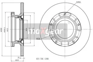 160 Średnica otworu centrującego [mm]: 96 Ilość otworów: 5 średnica zewnętrzna [mm]: 280 Minimalna grubość [mm]: 13 Wymiar gwintu: