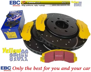 Przednie klocki YellowStuff + NAWIERCANE NACINANE tarcze hamulcowe EBC seria GD Ford F-150 2010-